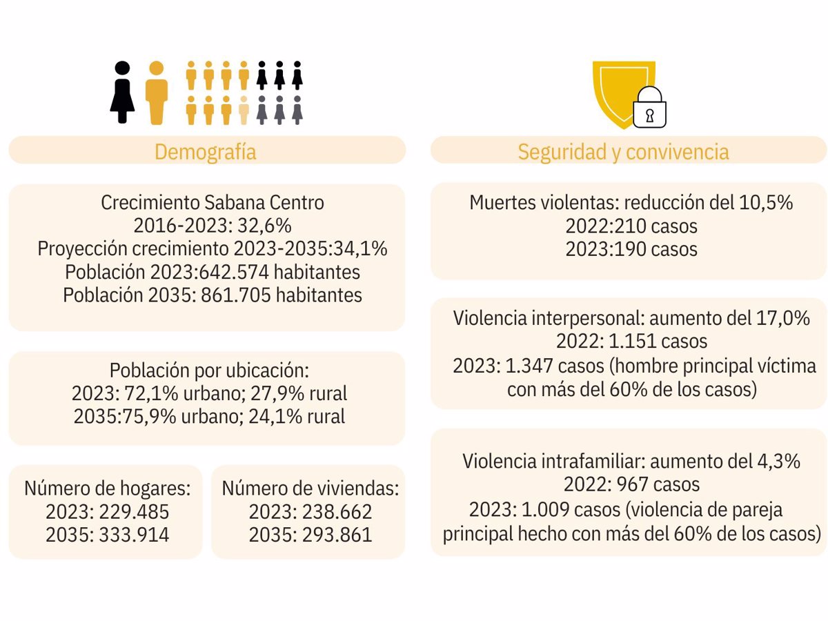 La Sabana Centro, integrada geográficamente por 11 municipios, tendrá 861.705 habitantes en el año 2035, es decir, en apenas una década, lo que representa un aumento en su población del 34,1%. La proyección de este crecimiento es uno de los datos más reveladores del Informe de Calidad de Vida (ICV) en la región correspondiente al año 2023 que se acaba de conocer.