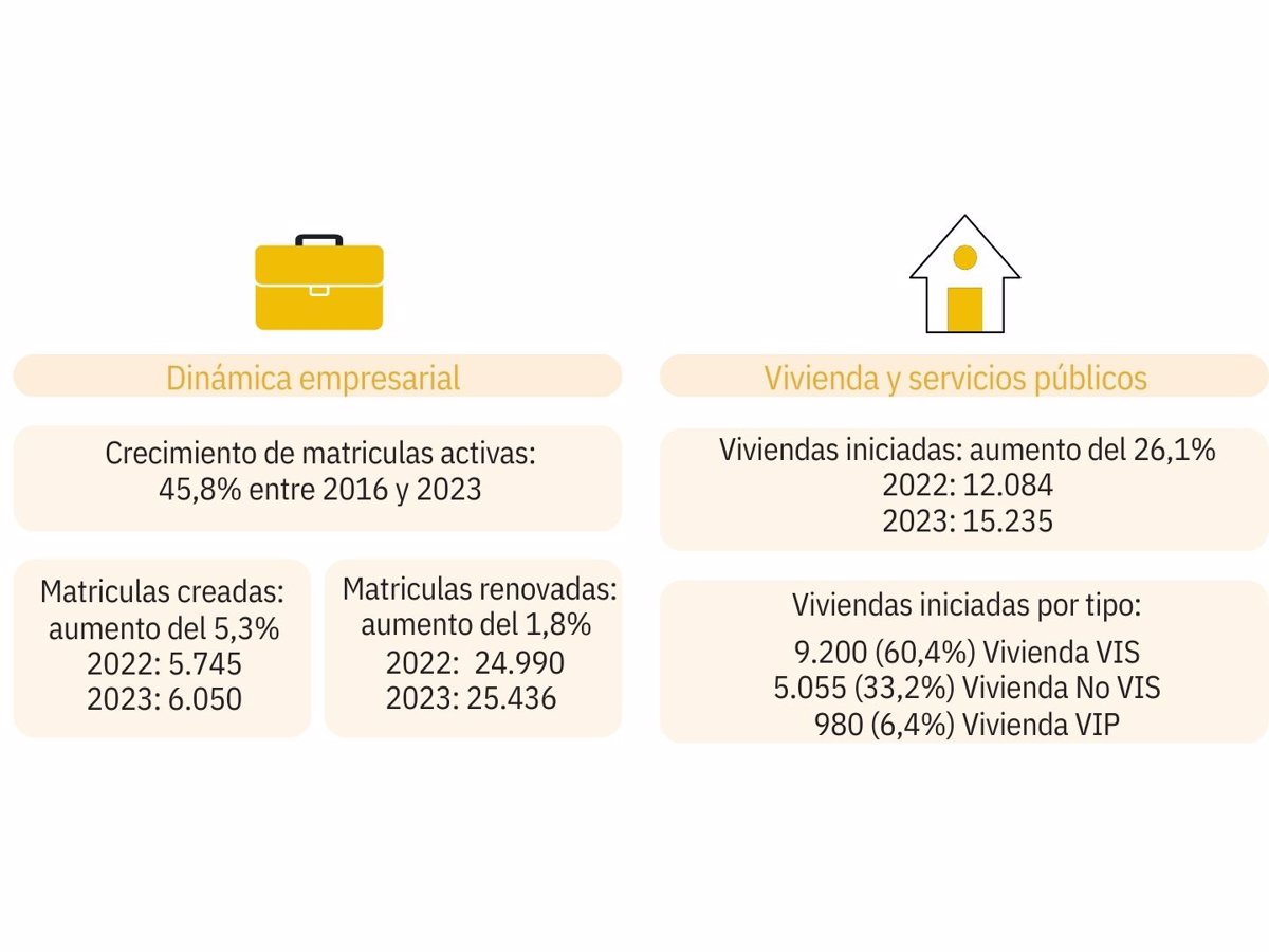 En cuanto a la dinámica empresarial, el informe revela que el crecimiento de matriculas activas entre 2016 (21.598) y 2023 (31.486) fue del 45,8%, según los datos suministrados por la Cámara de Comercio de Bogotá (CCB). Las matriculas creadas en 2022 fueron 5.745, mientras en el 2023 llegaron a 6.050.