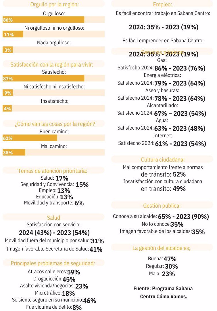 La percepción positiva sobre la calidad de vida en la región de Sabana Centro aumentó en el último año gracias al mejoramiento de los indicadores sociales y económicos, lo que consolida a la provincia como un buen lugar para vivir, con facilidades para emprender y conseguir empleo y con una amplia oferta cultural, recreativa y deportiva.